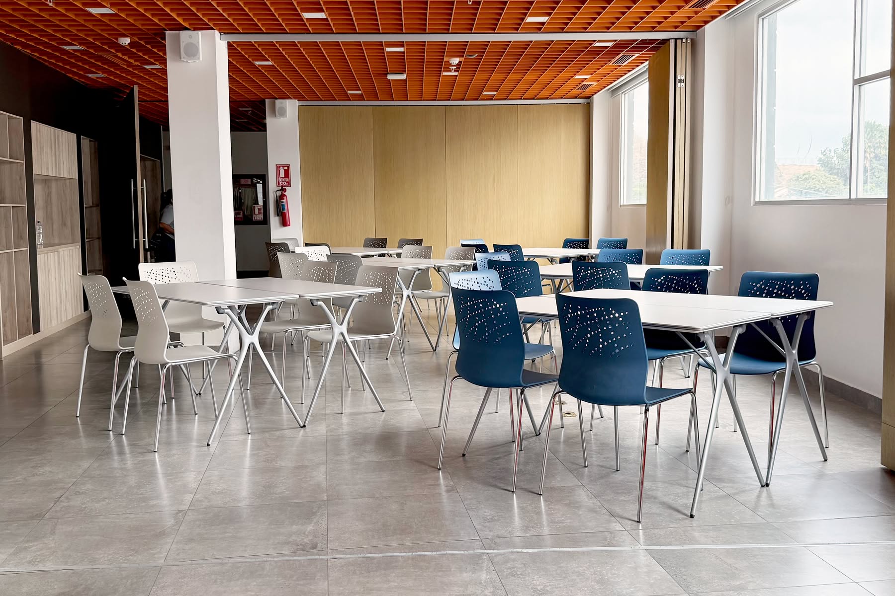 Salón con capacidad para hasta 100 personas dependiendo del mobiliario que requieran, cuenta con un tv wall y audio envolvente, micrófonos inalámbricos y de diadema, ideal para talleres y charlas de mayor audiencia.